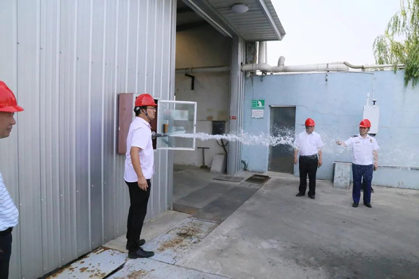 2020年9月7日,海安市委常委、副市長盧忠平帶隊,對科星化工生產(chǎn)廠區(qū)開展安全工作檢查。每到一處,消防、環(huán)保等領(lǐng)域?qū)<艺J(rèn)真仔細(xì)檢查,詳細(xì)了解消防安全、原料儲存安全等情況。科星化工董事長吳龍鐵全程陪同,并匯報了安全及環(huán)保各項工作情況。