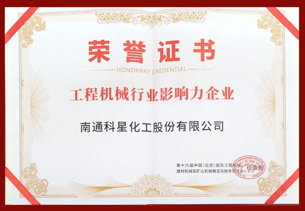 南通科星化工股份有限公司總經理傅士超帶隊參加展會,喜獲“工程機械行業影響力企業”。